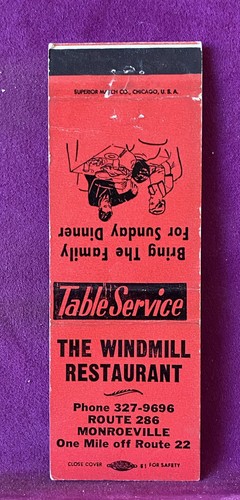 Matchbook Cover The Windmill Restaurant Monroeville Route 22 Ebay